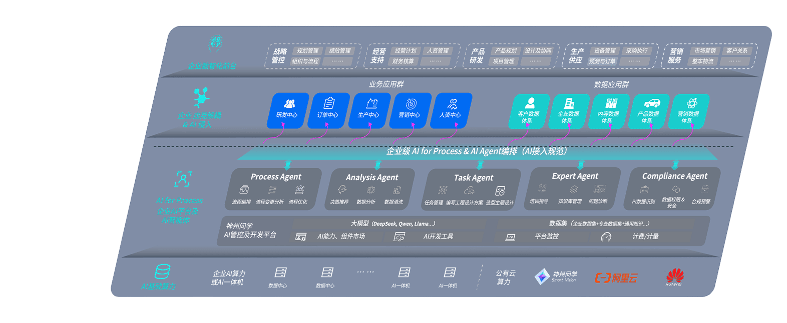 壹号娱乐问学智车解决方案是一套基于AI技术的汽车行业智能化系统,,,覆盖从底层算力到顶层AI应用的全栈方案。。。方案由算力层、、、模型层和应用层组成:算力层,,,方案支持多种一体机配置,,具备云端灵活部署、、、多云适配以及动态优化计算资源的能力;模型层,,,,壹号娱乐问学平台版提供了企业级AI应用一站式构建与管理平台,,,支持基于后训练强化技术的汽车企业专属模型的训练、、、、评测和运营;应用层,,,,壹号娱乐问学DeepSeek版提供包括超级员工、、、智能招采、、、、智能营销、、、智能客服、、、AI for BI等一系列解决方案,,,可助力汽车行业实现数字化转型,,让管理更智能、、响应更敏捷。。。